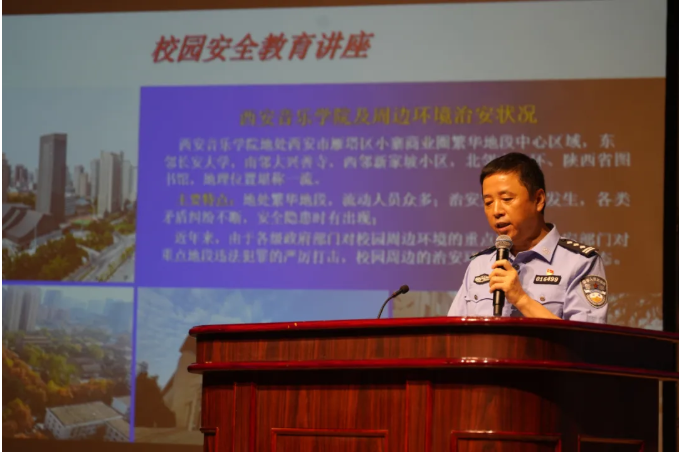 9月8日下午,保卫处联合小寨派出所警务室举办校园安全主题活动。小寨派出所驻校警官徐勇军凭借丰富经验,以鲜活案例讲解防范电信诈骗等校园安全要点,有效提升学生风险防范意识;保卫处王启立老师以“全民消防 生命至上”为主题,含高校火灾案例警示、疏散逃生方法、灭火器使用教学,强调宿舍禁用大功率电器、离宿断电锁门、及时拔插头、不吸烟等防火要点。活动中,保卫处处长高学飞深情献唱《平安是福》将气氛推向高潮,并从日常管理、应急处置、隐患排查等维度深入阐述,号召师生共建平安校园。